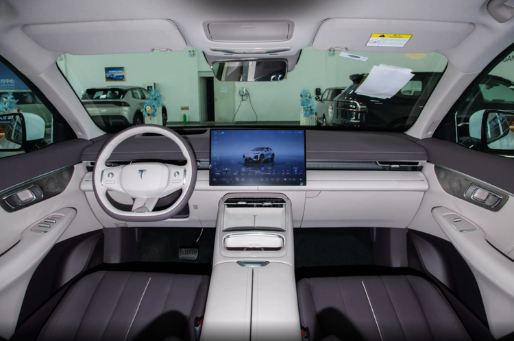 座舱内部,深蓝S07采用T字型的设计布局,中控台简洁明了,大面积进行软质包裹,视觉效果舒展大气。车内没有实体按键,呈现出一种科技前卫的感觉,值得一体的是,深蓝S07取消了传统仪表盘,行车信息由15.6英寸中控屏呈现,大部分驾驶员可能需要一定的时间适应。中控屏材质为LCD,分辨率为2.5K,视显效果清晰,强光下也有不过的显示效果,夜间形式倒车影像同样清晰。