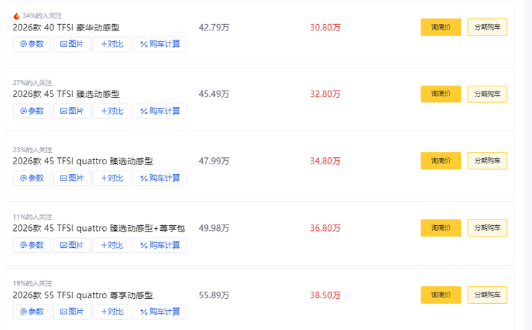 在豪华中大型轿车市场, 奥迪A6L(参数|询价)一直是“务实派”的代名词,2026款作为本代车型换代前的最后改款,40TFSI入门版凭借大幅终端优惠,成为很多消费者触达豪华的优选。我花3天深度试驾这款车,覆盖城市通勤、高速巡航和家用接送场景,结合官方参数与车主口碑,不吹不黑聊聊它到底值不值得入手,预算35万左右的消费者,既要品牌面子,更要实用体验。