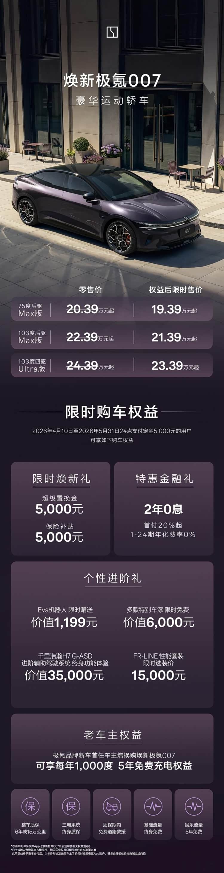 4月10日,极氪正式发布了旗下焕新7系车型,包括焕新极氪007和焕新 极氪007GT(参数|询价)两款新车,同时还推出了品牌五周年限定的极氪001五周年纪念版,开启限量发售。