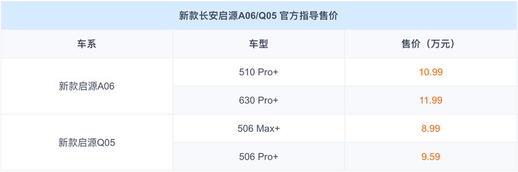 4月10日,长安启源推出两款年度改款车型:中大型轿车新款启源A06(10.99万/11.99万)和紧凑型SUV新款启源Q05(8.99万/9.59万)。此外,启源Q05激光特别版将在北京车展首发。