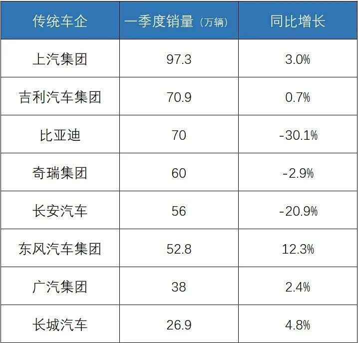 曾连续18年称王的“老大哥”上汽集团,一季度以97.3万辆的成绩重夺第一,同比增长3%。它的回暖极其讽刺——靠的不是曾经利润丰厚的合资品牌(上汽大众依然下滑),而是自主品牌(同比增长9.3%)和海外业务(同比增长48.3%)。