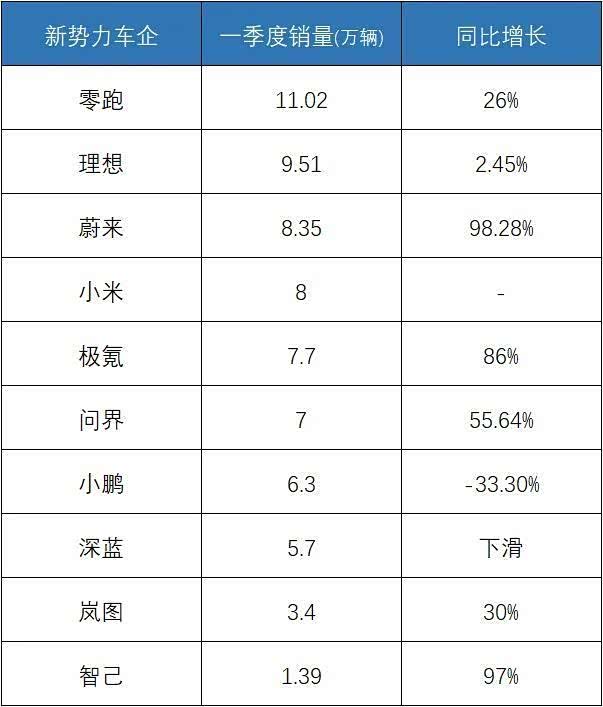 真正让市场意外的是蔚来。一季度同比增长92.3%,增速位居新势力第一。这一轮增长得益于蔚来ES8换代和乐道、萤火虫品牌的放量。经历了组织架构调整和成本控制的阵痛后,蔚来似乎在商业化和高端调性之间找到了一个微妙的平衡点。