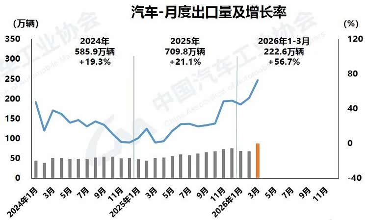 一季度222.6万辆的出口数据,同比增长56.7%,这个增速在全球主要汽车出口国中一骑绝尘。更值得注意的是结构:新能源车出口增速(116.2%)是传统燃油车(29.9%)的4倍。