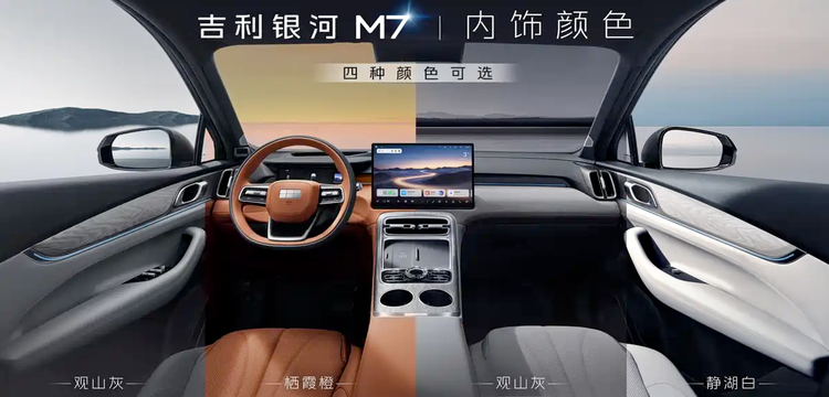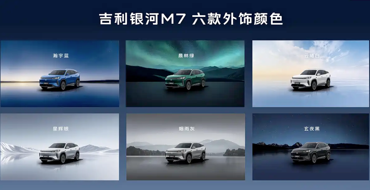 外观方面,银河M7采用飞檐虎视前脸设计,前机舱盖与前脸中间内嵌贯穿式LED日间行车灯带,与两侧狭长多边形大灯组形成一体式设计。前包围两侧配备纵向通风开口并辅以镀铬装饰,下方设有AGS智能可变进气格栅。新车提供瀚宇蓝、晨林绿、云曦白、星辉银、烟雨灰、玄夜黑共6种外观颜色。