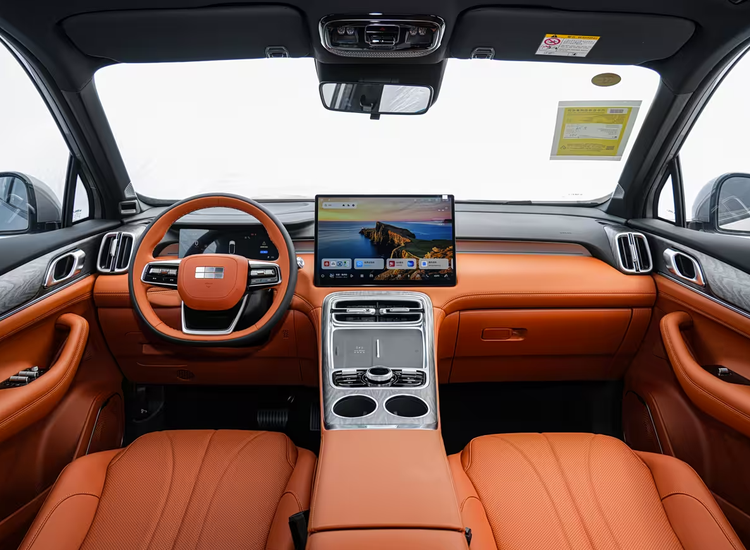 配备15.6英寸2.5K中控屏、25.6英寸HUD抬头显示及全液晶仪表盘,搭配双色三辐式多功能方向盘。搭载Flyme Auto 2新一代AI智慧座舱,支持Hi Eva语音车控及星睿大模型AI智能对话。车内配备256色AI氛围灯,支持九种场景联动。音响系统为Flyme Sound 23扬声器(含头枕音响),功放功率2000瓦,支持7.1.4全景声道。空间方面,后备厢容积700升,最大可扩展至1990升,全车共30处储物空间,并提供128升隐藏储物空间。