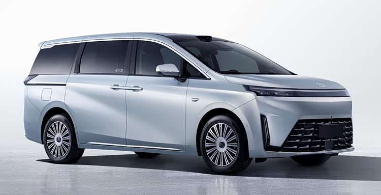 具体来看,前脸部分采用了最新的设计语言,封闭式的面积要更高一些,似乎更具新能源感,上方有粗壮灯带,连接了扁平的大灯组,要比传祺E8更简洁,下方仍保留有梯形的大嘴格栅,显示了MPV车型的感觉,不过只占半幅,收敛了不少。纵向的车轮进气道不会缺席,似乎也有灯带加入,取代了此前纵向的Led灯组,保证了科技感的属性,车顶激光雷达不会缺席,符合时尚。