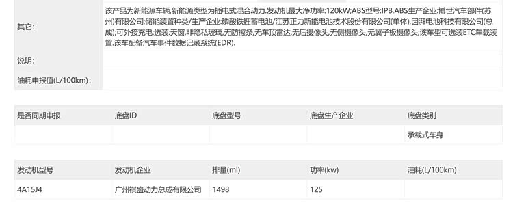 而在动力方面,目前只申报了一款车型,搭载1.5T发动机,最大功率170马力,配电动机组成插电混动总成,与之匹配的是磷酸铁锂电池组,更多的信息还有待官方公开,非常值得期待。
