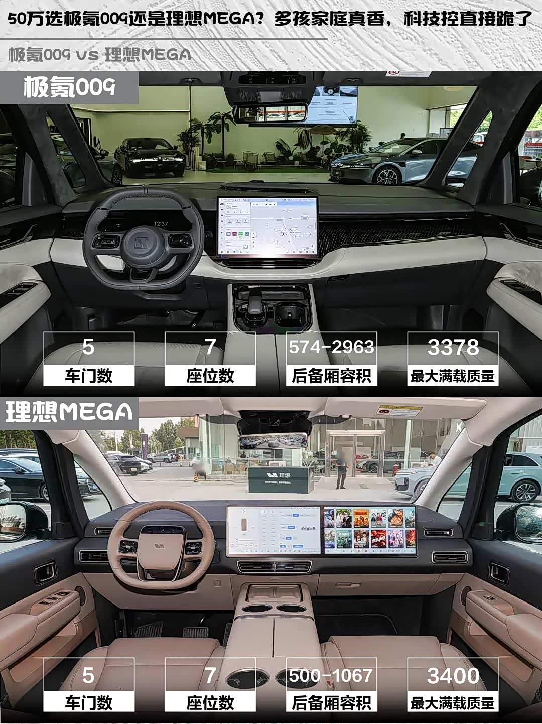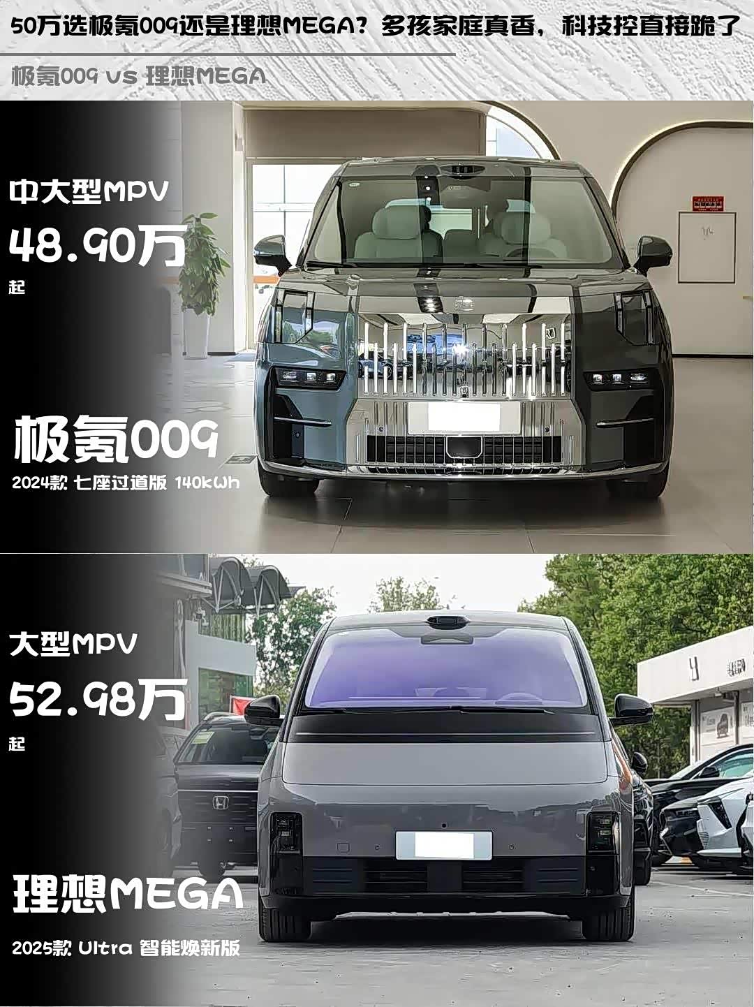 最近在选纯电MPV的朋友看过来!极氪009 2024款七座过道版和 理想MEGA(参数|询价) 2025款Ultra智能焕新版深度对比,这两台50万级顶流选手到底怎么选?作为深度体验过两台车的车主,掏心窝子分享真实感受👇