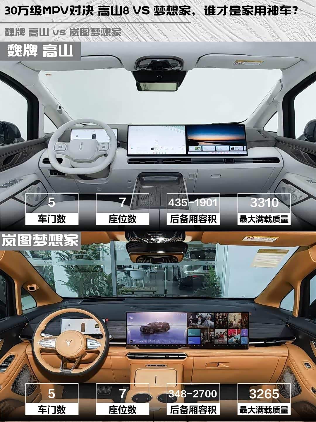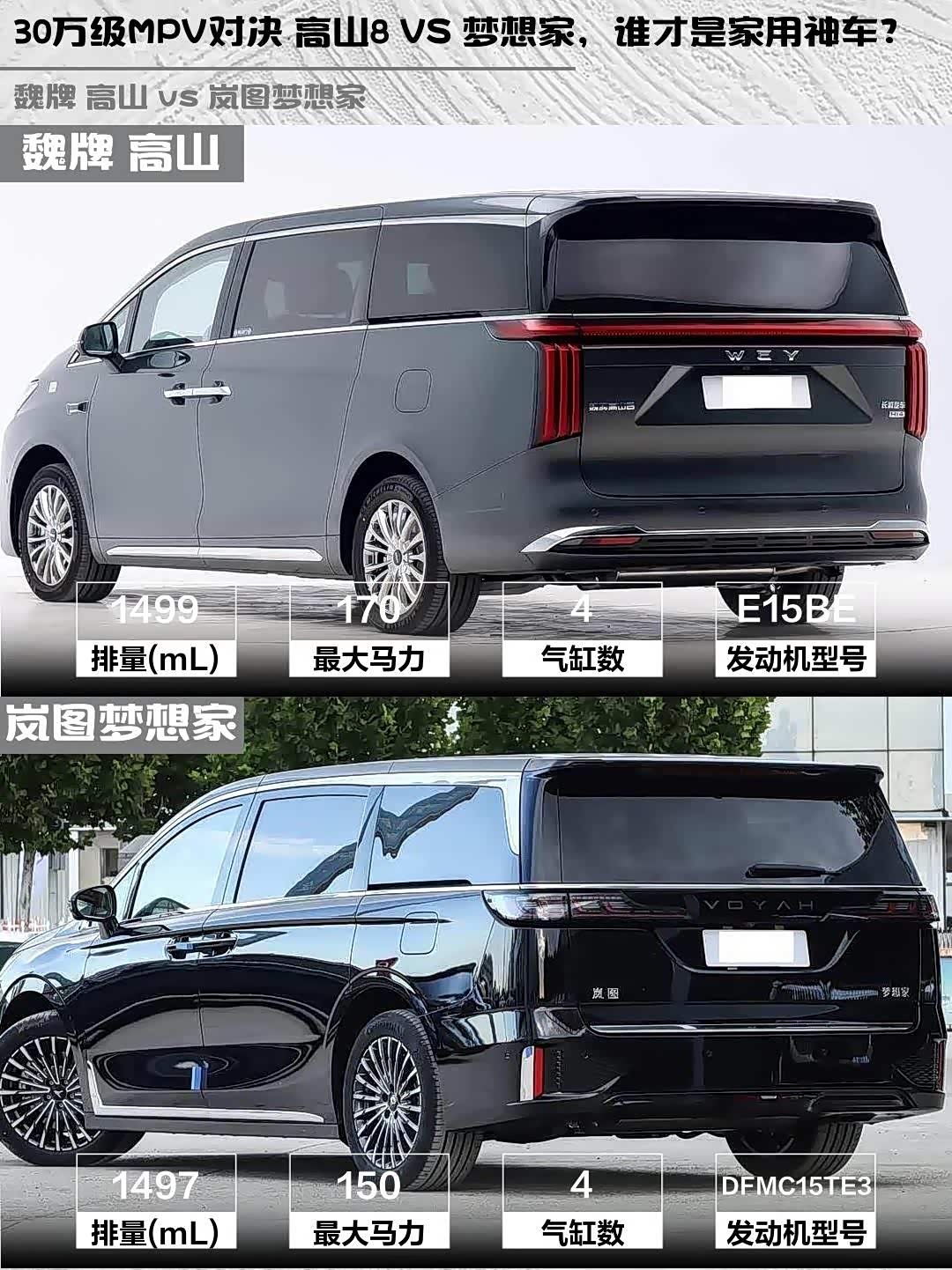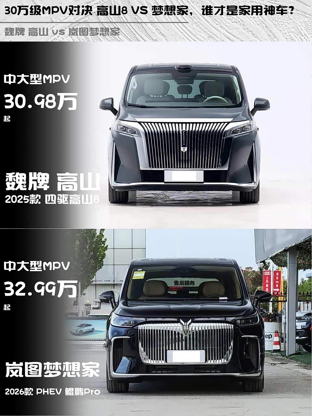 最近在考虑换一辆新能源MPV,主要纠结魏牌高山2025款四驱高山8和 岚图梦想家(参数|询价)2026款PHEV 鲲鹏Pro,今天就来聊聊这两款车的实际体验对比!🚗💨