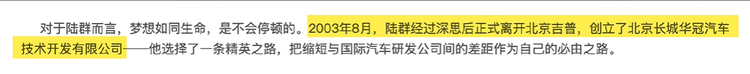 2003年,已经有了13年项目经验的陆群,自己跑出来单干了个独立的整车工程公司——长城华冠,意思是在北方的中华之冠,跟长城汽车没有半毛钱关系。