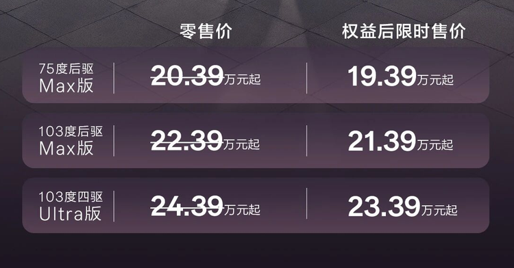 动力方面,两款新车均全系升级900V高压架构,后驱版最大功率370千瓦,最大扭矩535牛米,四驱版最大功率585千瓦,最大扭矩812牛米,007后驱版和四驱版的0-100km/h加速时间分别为4.6和2.73秒;007GT后驱版和四驱版的0-100km/h加速时间分别为4.8秒/2.85秒。