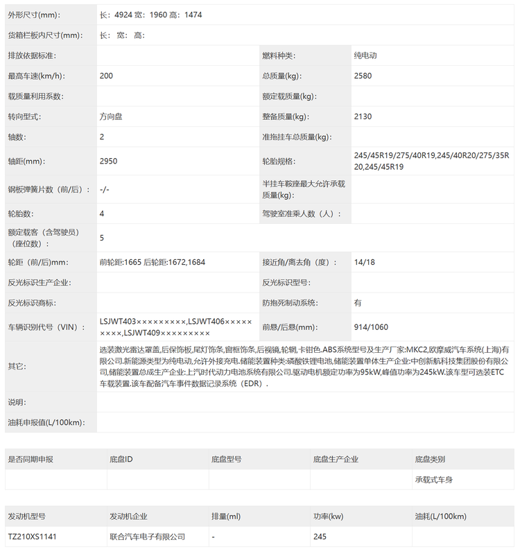 尺寸方面,新车的长宽高分别是4924/1960/1474mm,轴距为2950mm,和现款车型相比车长略有下降,其余尺寸没有什么变化,轮胎方面有前245/45 R19后 275/40R19、前245/40 R20后275/35 R20以及245/45 R19三种规格可选。