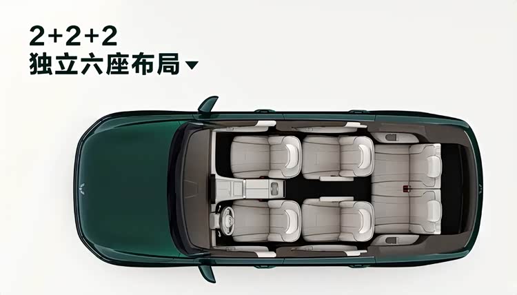尺寸这块,接近5米的车长,2950毫米的轴距。这组数据搞了个2加2加2的六座布局。