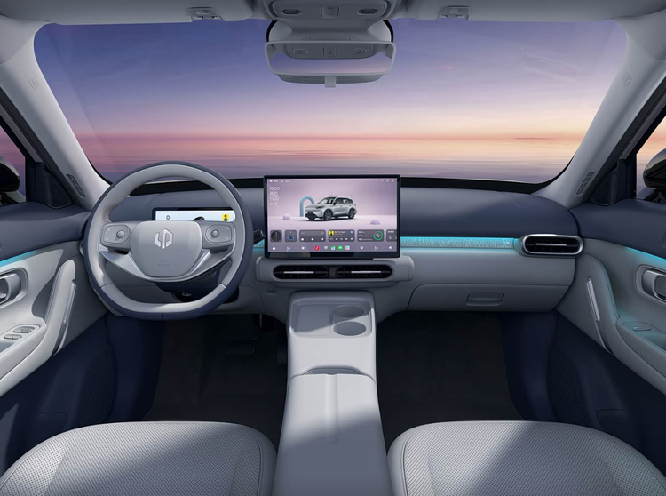 接着坐进车内,零跑A10给人第一印象是它并不显得廉价,因为从配色到做工,以及用料都属于越级水平,各位也可以通过实车图来感受一下,起码在10万内很难找到比它更强的产品。再者,新车也提供8.88英寸全液晶仪表、14.6英寸2.5K悬浮式中控屏,且中控屏内置8295座舱芯片,这样的硬件搭配别说10万内不多,15万级也不见得有几款能够配齐。所以配合着通义千问AI大模型,智能交互体验也算一大亮点了,开上几年也不用担心会卡顿。