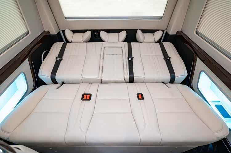后排 6 座采用人体工学设计,靠背角度可手动调节至 160°,配备可折叠扶手与隐藏杯架,即便长途乘坐也无局促感,8 人满员时,全员均能享受 “专属舒适区”,尽显企业接待诚意。