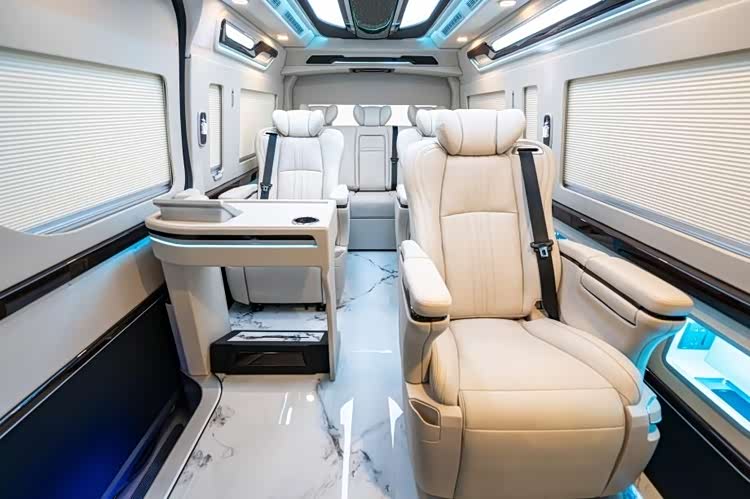 地面铺设进口白色岩板地板,经 12 道钢化工艺处理,硬度达莫氏 7 级 —— 高跟鞋踩踏无划痕、行李箱拖拽不留印,咖啡、果汁泼洒后无需特殊清洁,湿布擦拭即可恢复洁净,彻底解决 “浅色地板难打理” 的顾虑。白色地板表面做哑光处理,避免强光下反光刺眼,与白色座椅形成 “全白联动”,视觉上拉伸座舱纵深感,8 人乘坐不显压抑,反而更显简约高级,契合高端商务场合的审美需求。丰田海狮4S店 北京华通丰业