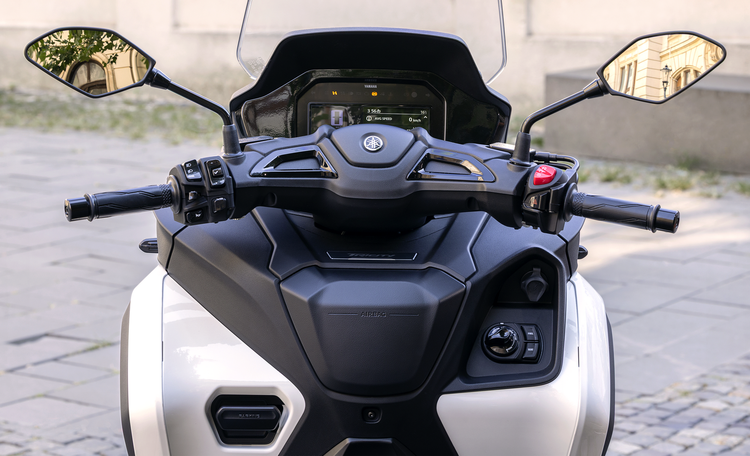 其次就值得一提的就是LMW300可选装的安全气囊,这是雅马哈首款配备安全气囊的量产踏板车型,气囊集成在车把下方,能在正面碰撞时快速展开,有效缓冲骑手前冲动能,降低伤害风险,无需额外操作,全程待命更省心。除此之外,新车升级了4.2英寸TFT全彩色数字仪表,支持导航和智能手机连接,行车数据一目了然;配备LED灯光系统、13升油箱和795mm鞍座,兼顾实用性和舒适性,14英寸前后车轮也让行驶更平稳。