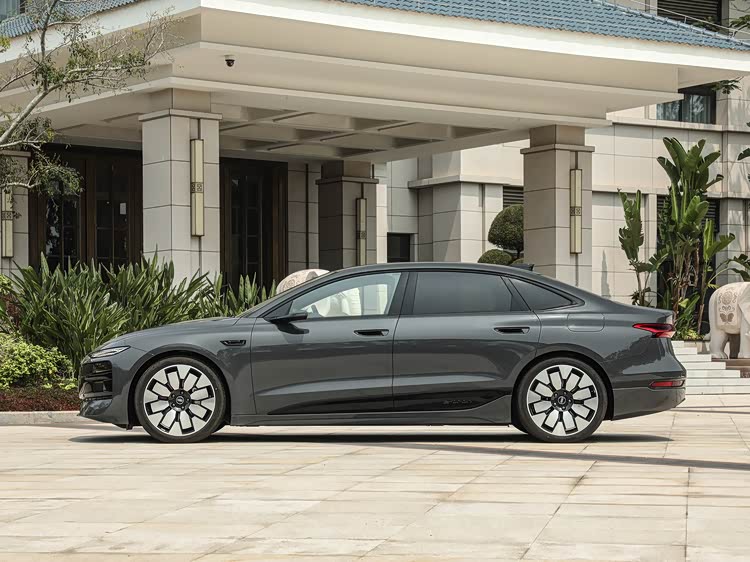 侧面采用中国市场专属的三厢造型,侧裙的嵌入式黑色高光饰条降低了视觉重心。车身尺寸为5073/1942/1522mm,轴距3076mm。车尾配备贯穿式第二代OLED尾灯,除8种数字签名外,还支持car-to-x车联网交互,可向其他道路使用者发出事故、故障预警。