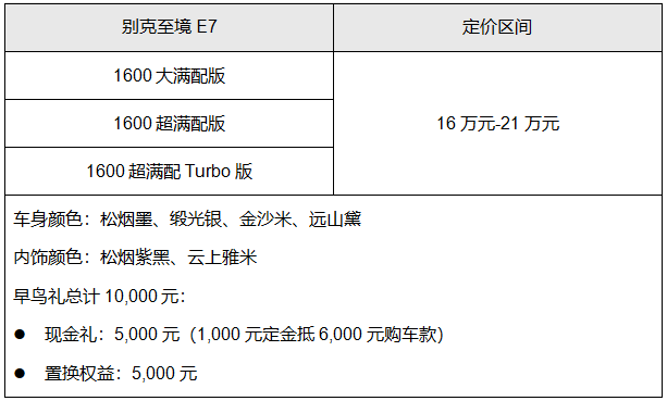 据了解,别克至境E7全国经销商均有现车。新车将于4月22日公布售价并开启交付。即日起至2026年4月21日(含)前,用户完成线上下定,可享早鸟礼总计10,000元;此前已下订用户,可同享该项早鸟权益。