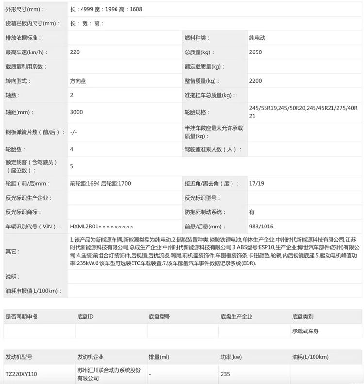 动力方面,新车搭载由苏州汇川联合动力系统股份有限公司生产的驱动电机,单电机最大功率235千瓦,与现款超长续航后驱版相同。电池方面,新车匹配宁德时代磷酸铁锂电池,整备质量为2200公斤,相比现款超长续航后驱版的2315公斤有所减轻。