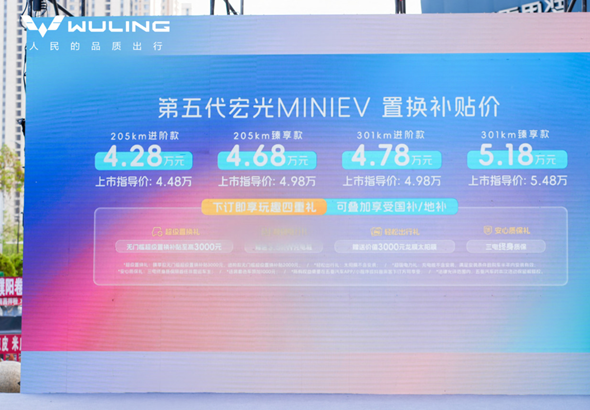 第五代宏光MINIEV直接掀了桌子。同级唯一的10.1英寸悬浮式大屏安排上,怀挡设计也安排上,瞬间就有了精致小车的感觉。