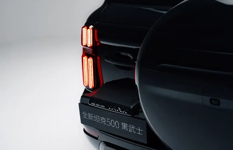 作为特别版车型,坦克500黑武士整体基于现款车型打造,并在细节上进行了调整。外观采用全黑涂装,包括哑光黑色前格栅,同时配备黑色侧踏、行李架、密辐式亮黑轮圈以及红色刹车卡钳,整体营造出更加运动的视觉效果。