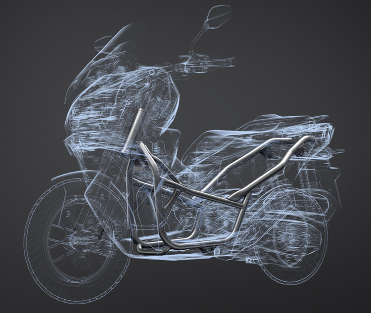 NS150ES采用了单层平踏车架、NS150XC则使用的是多功能龙骨车架,它的前轮毂也会更大,另外在运动化造型下,NS150XC会更加霸气硬朗。