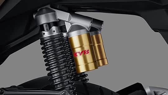 NS150XC不分高低配版多了双摄像头行车记录仪、三轴IMU惯性单元、自动光感大灯、KYB前倒置减震器,后气囊减震器、弯道ABS等。