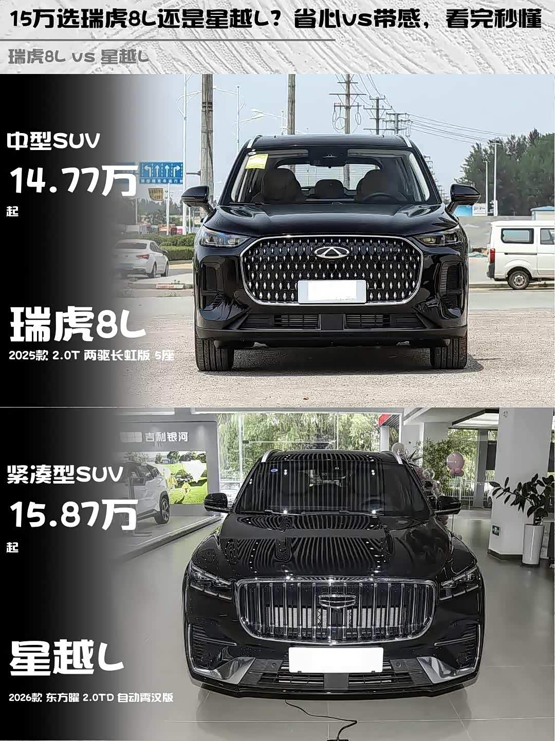 15万选瑞虎8L还是星越L?省心vs带感,看完秒懂