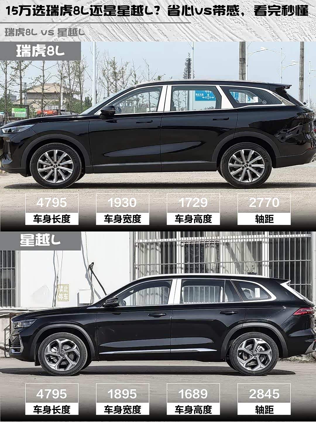 瑞虎8L指导价14.77万,性价比突出适合务实家庭;星越L贵1.1万但配置更豪华,适合追求品质的年轻群体。要动力选星越L,要省心选瑞虎8L,你们会pick哪款呢?