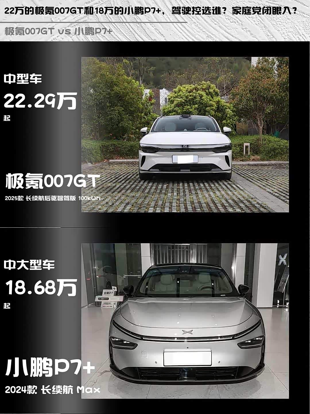 最近在选纯电轿跑的朋友看过来! 极氪007GT(参数|询价) 2025款长续航后驱智驾版和小鹏P7+ 2024款长续航Max这两台车我都深度试驾过,今天从真实体验角度给大家唠唠差异点👇