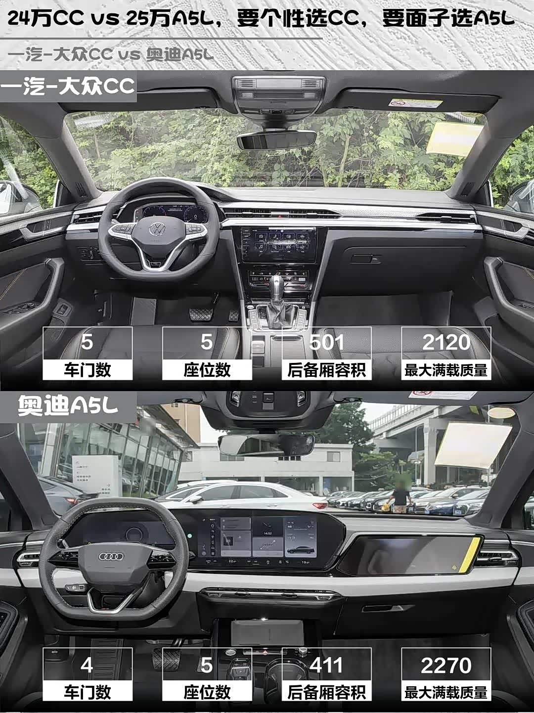 要个性操控选CC,无框车门+大后备箱适合爱玩的年轻人;要品牌格调选A5L,内饰豪华感和底盘舒适性更胜一筹。我个人更爱CC的暴力美学,毕竟省下的钱够加三年油了!