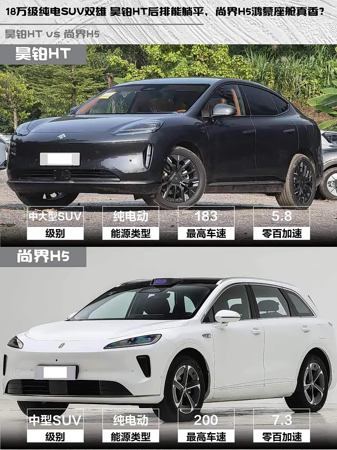 18万级纯电SUV双雄 昊铂HT后排能躺平,尚界H5鸿蒙座舱真香?