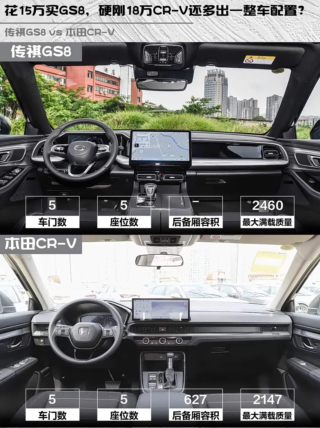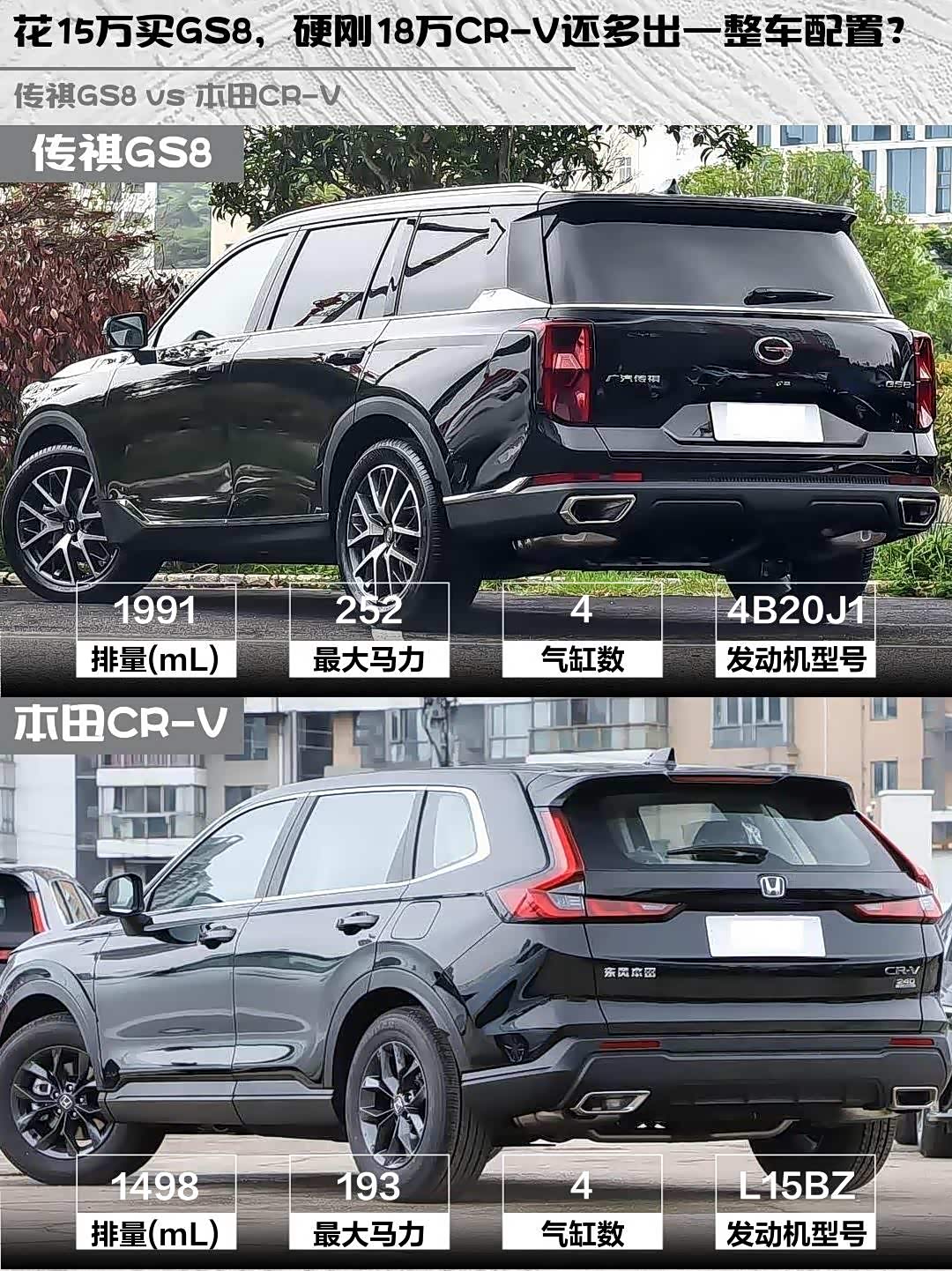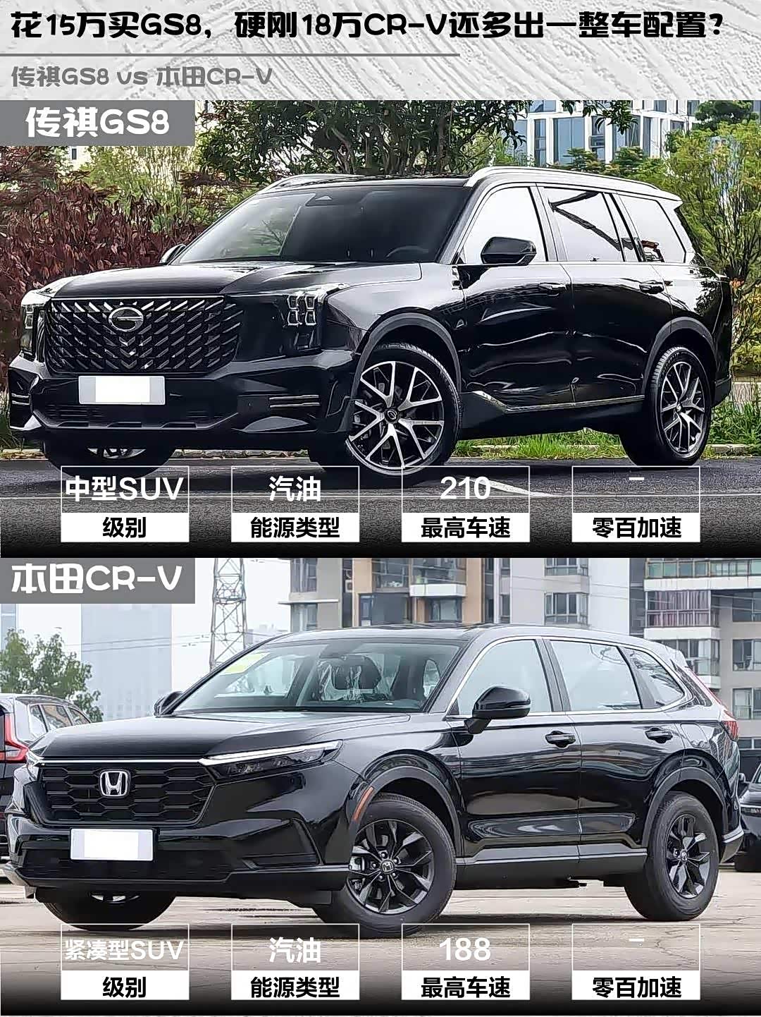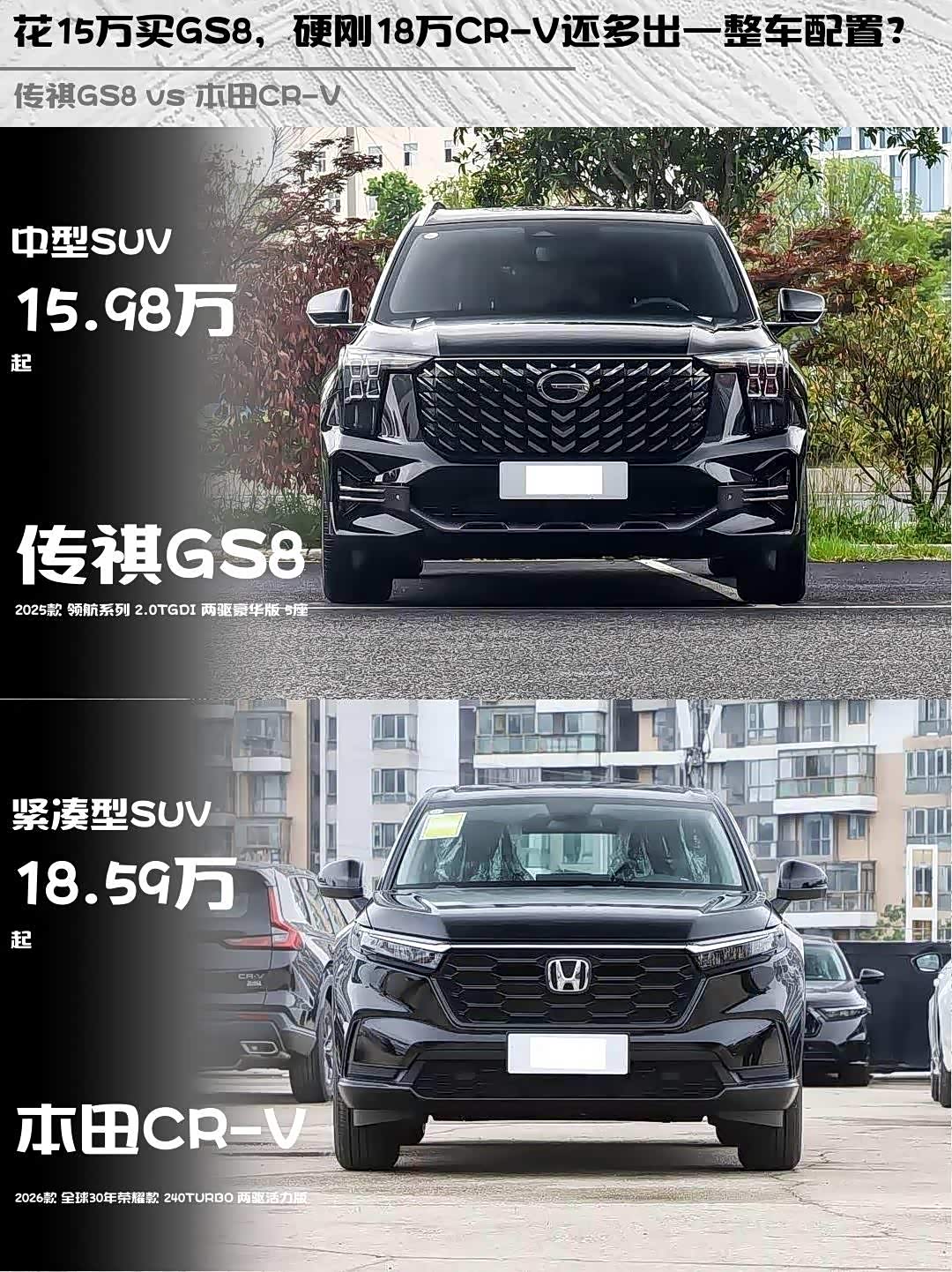 传祺GS8和 本田CR-V(参数|询价)这两台SUV到底怎么选?最近陪朋友看车纠结了好久,最后锁定了2025款传祺GS8领航系列2.0TGDI两驱豪华版5座和2026款本田CR-V全球30年荣耀款240TURBO两驱活力版,深度对比后发现了不少有意思的点🔥