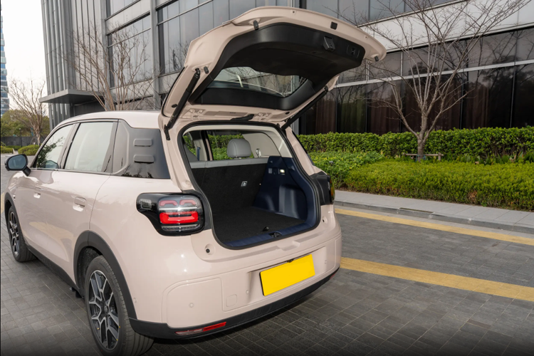 车身侧面比较小巧紧凑,毕竟是小型SUV,尺寸是4270×1810×1635mm,轴距2605mm。为了让车内空间更大,它把前悬做短了,看着很利落。整体有点方盒子的感觉,线条很柔和,车窗用了黑色饰条,做出半悬浮车顶的效果。门把手是半隐藏式的,轮眉和侧裙也都做了黑色处理,看着更精致。除此之外,车尾简约又饱满,吸睛的就是两边尾灯,也是笑脸造型,辨识度很高。现在满大街都是贯穿式尾灯,它这个设计还挺有自己想法的。