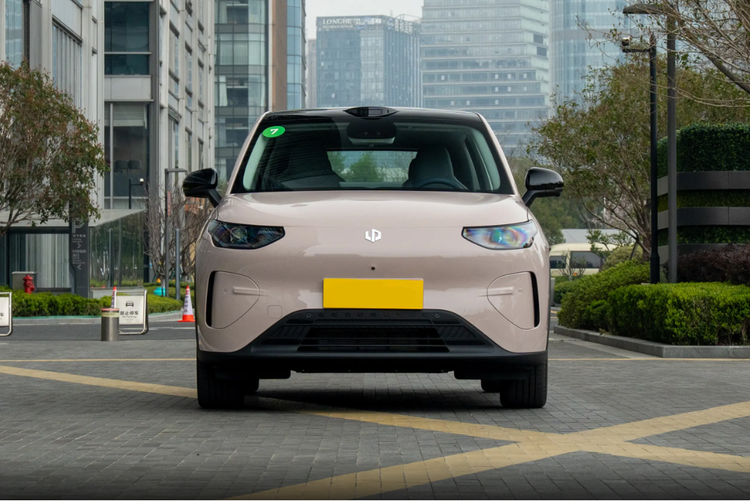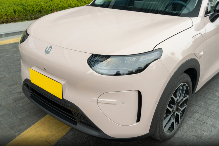 在外观设计上,零跑A10整体看着方方正正的,车头很饱满圆润,中间是零跑的车标,一眼就能认出来。两边大灯里面有三条灯珠,看着就跟一张笑脸似的,风格特别清新。前脸中间往里凹了一块,两侧有竖着的导流槽,还配了三角形装饰板,底下还有突出的前唇和进气格栅,让车头多了点运动感。