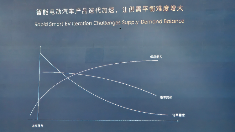 “一款新车上市发布阶段积累大量需求,传播呈脉冲式,热销期大家都在等车。等到产能爬坡完成、供应链跟上,需求已经下去了。好不容易爬坡完成,没订单了。新车热销周期大幅缩短,很难有车型持续旺销一年。”为此,“一年浪费的钱非常多,一款车型浪费几个亿很正常。厂家没赚到,供应链没赚到,用户也没赚到”。李斌把这一现象总结为:“新车效应死亡谷”。