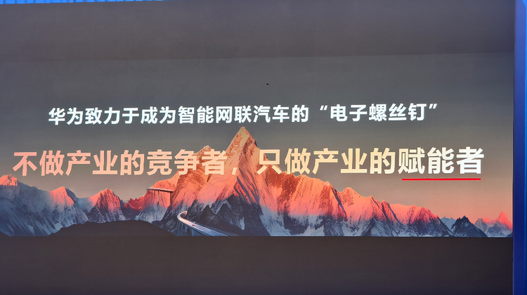 华为公司高级副总裁、引望公司CEO靳玉志率先发言,再次重申了华为不造车,只为产业赋能,甚至把华为比作了“电子螺丝钉”。