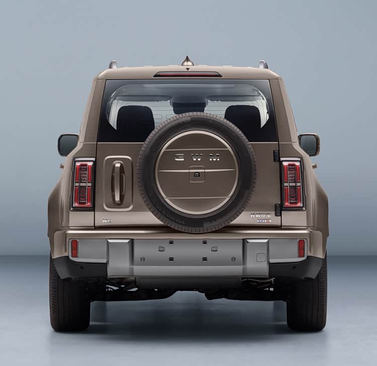 车尾布局更贴合越野玩家的“口味”,垂直排列的尾灯组、侧开尾门、硬朗包围,以及外挂轮胎,十足越野老炮范儿。