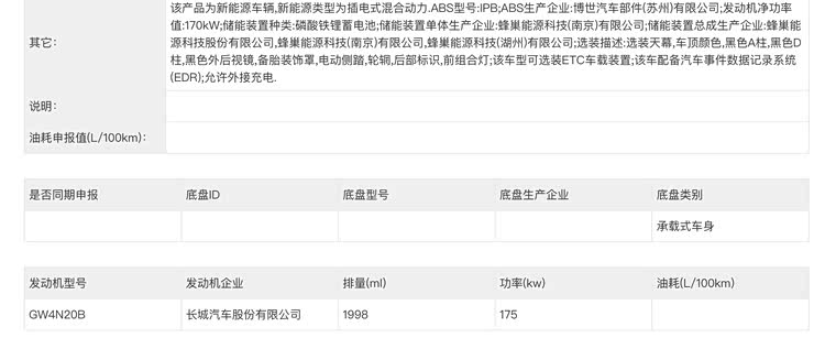 动力方面,新车基于长城归元平台打造,采用长城 Hi4 系列四驱越野架构,发动机提供1.5T和2.0T两种,最大功率分别为123kW、175kW;其中2.0T车型可以参考同平台的魏牌V9X,搭载的是2.0T+P2+P4 +4DHT的超级Hi4插混系统,支持800V高压平台,并拥有蟹行模式、极小转弯半径等主打技术,因此新车的越野性能和城市舒适性都值得期待。