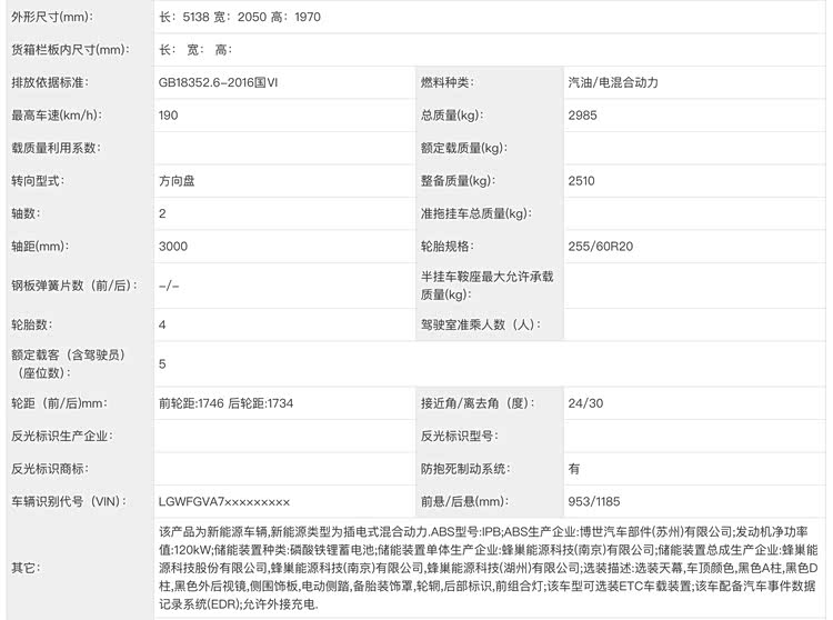 根据申报图显示,新车的长宽高分别为5138(5299)、2050、1970mm,轴距为3000mm,属于中大型SUV范畴;并且,新车支持多样化选择,例如可以选天幕、车顶颜色、前组合灯、外挂轮胎装饰罩和电动侧踏等,满足不同消费者的使用需求。