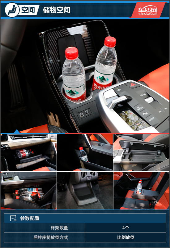 储物空间方面,评测车提供了4个杯架,可以很好地满足车内乘客的使用需求。此外,除了常规的储物空间,中控台为分层悬浮式结构,前方设置了一个手机槽,拿放手机十分顺手,并且还兼具无线充电功能;下方为开放式储物槽,能够放置手提包等大件物品,颇为实用。