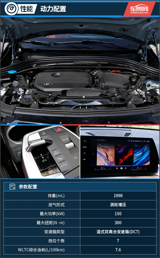 动力系统方面,评测车搭载一台2.0T四缸汽油发动机,最大功率150kW,最大扭矩达到300N·m,与之匹配的是7挡湿式双离合变速箱。