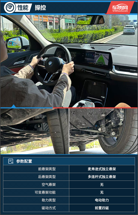 操控方面一直是宝马的一大优势,前麦弗逊式与后多连杆式独立悬架的组合,在保证舒适性的同时,对路面细碎颠簸的过滤细腻柔和;高速过弯时,车身侧倾幅度也被控制在合理范围,给驾驶者带来十足的信心。此外,评测车搭载的BMW xDrive智能全轮驱动系统,通过智能、高效的方式,灵活地在前轮和后轮之间分配驱动力,实现更好的抓地力表现。