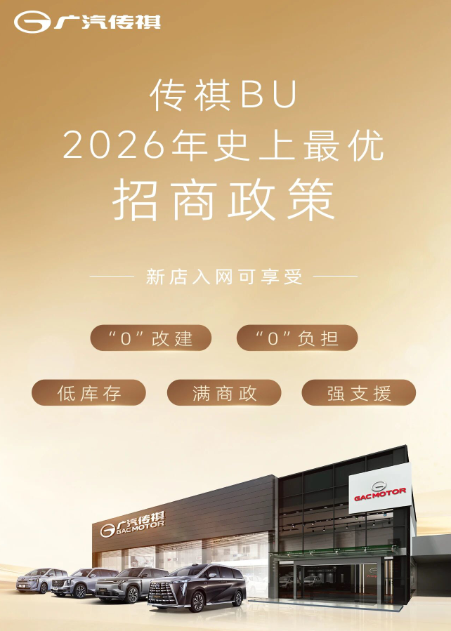 2026年一季度,广汽传祺交出全球销量92129辆、同比增长33.06%的开门红成绩单(数据来源:广汽集团2026年3月产销快报),同时启动大规模经销商网络扩建,吸引了多家运营过合资及豪华品牌的大型4S店集团扎堆加盟。