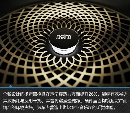 内饰做工及用料表现均可圈可点,整体品质感极为出色,然而宾利欧陆GT Virtuoso的亮点却并不在此。作为宾利与Naim音频工程团队十五年合作的巅峰之作,Naim for MULLINER音响系统在硬件配置与声学设计上均实现了全新突破。18个扬声器搭配2个专属驱动单元,再加上杜比全景声与Fraunhofer Symphori空间音频渲染技术,实现座舱沉浸式3D环绕声场,声音的层次感、定位精度与细节还原都达到了顶级水准。