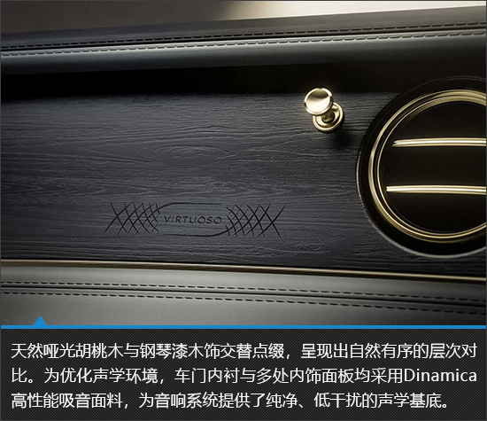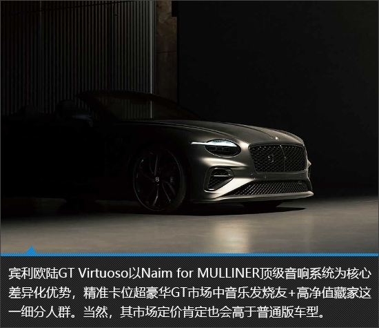 今年早些时候,宾利于英国克鲁总部正式发布了Virtuoso系列,覆盖品牌旗下多款量产车型,其最大亮点就是搭载了宾利史上最为顶级的车载音响系统——Naim for MULLINER。官方表示,作为以音乐为创作基调的专属系列,新车采用了专属外观与主题内饰,力求将感官体验与艺术表达推向全新高度。其中, 宾利欧陆(参数|询价)GT Virtuoso延续品牌百年定制奢华基因,通过细节装饰与声学工程的升级,将手工匠造与听觉体验深度融合。