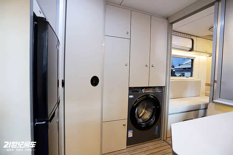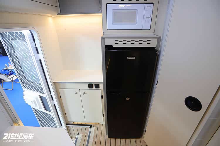 厨房区域142升冰箱(冷藏97L+冷冻45L),食材保鲜无忧;微波炉、移动电磁炉、外置高原版柴油灶,中西餐烹饪自由切换。