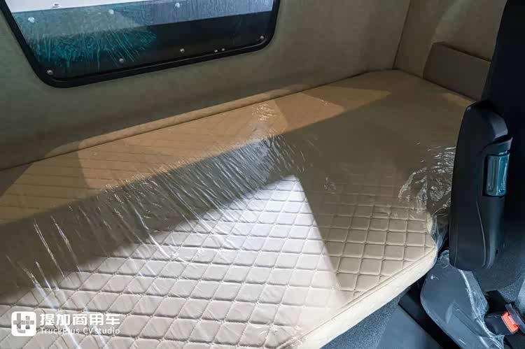 得益于驾驶室后凸结构,江淮跨越X7纯电动牵引车搭载了一张大尺寸卧铺,为驾驶员带来舒适从容的休息体验,能量满满再出发。