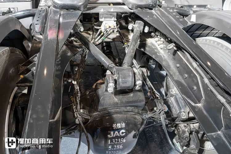江淮跨越X7纯电动牵引车采用6×4的驱动形式,后桥采用长换油469桥,速比5.286,具备出色的减速增扭效果。在高效电机、高效变速器、高效驱动桥与高效精准标定的共同作用下,江淮跨越X7纯电动牵引车不仅动力强劲,同时满载等速电耗也仅为1.6度/公里左右。